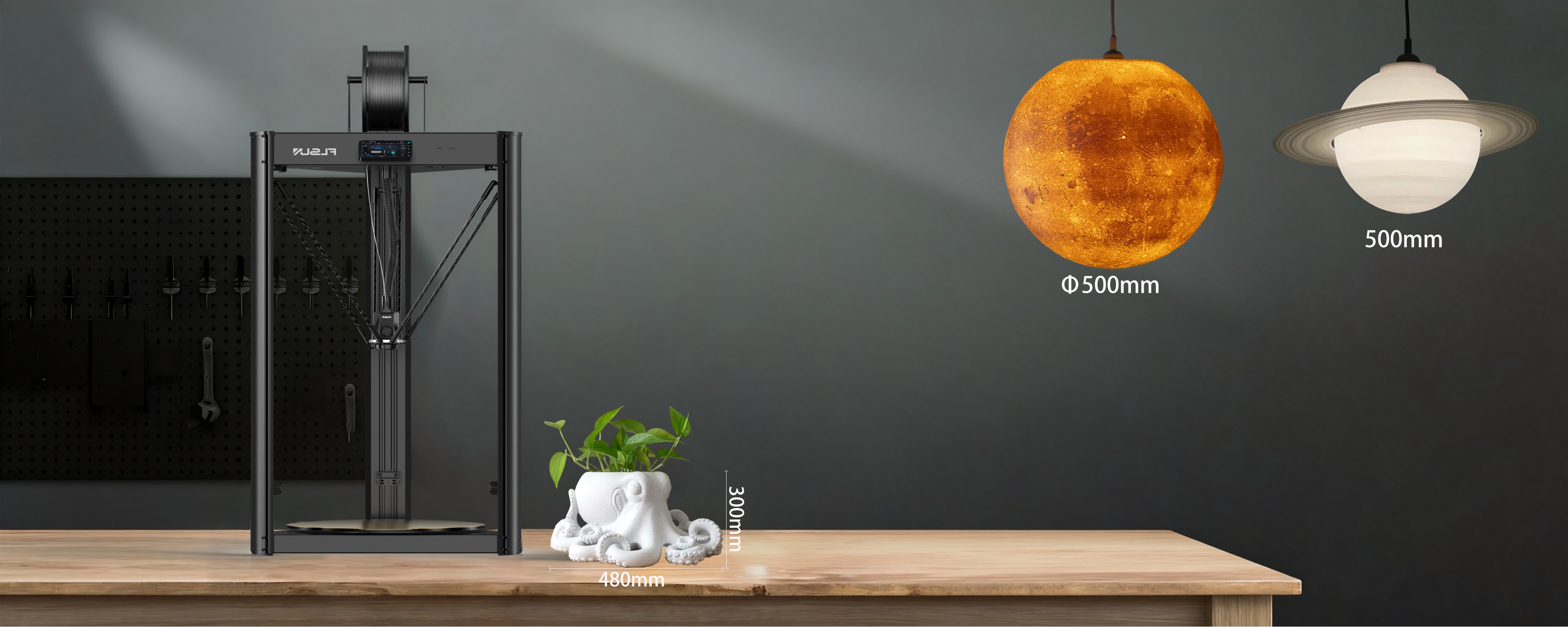 - Large Build Volume: 500mm x 550mm (up to 480mm height)